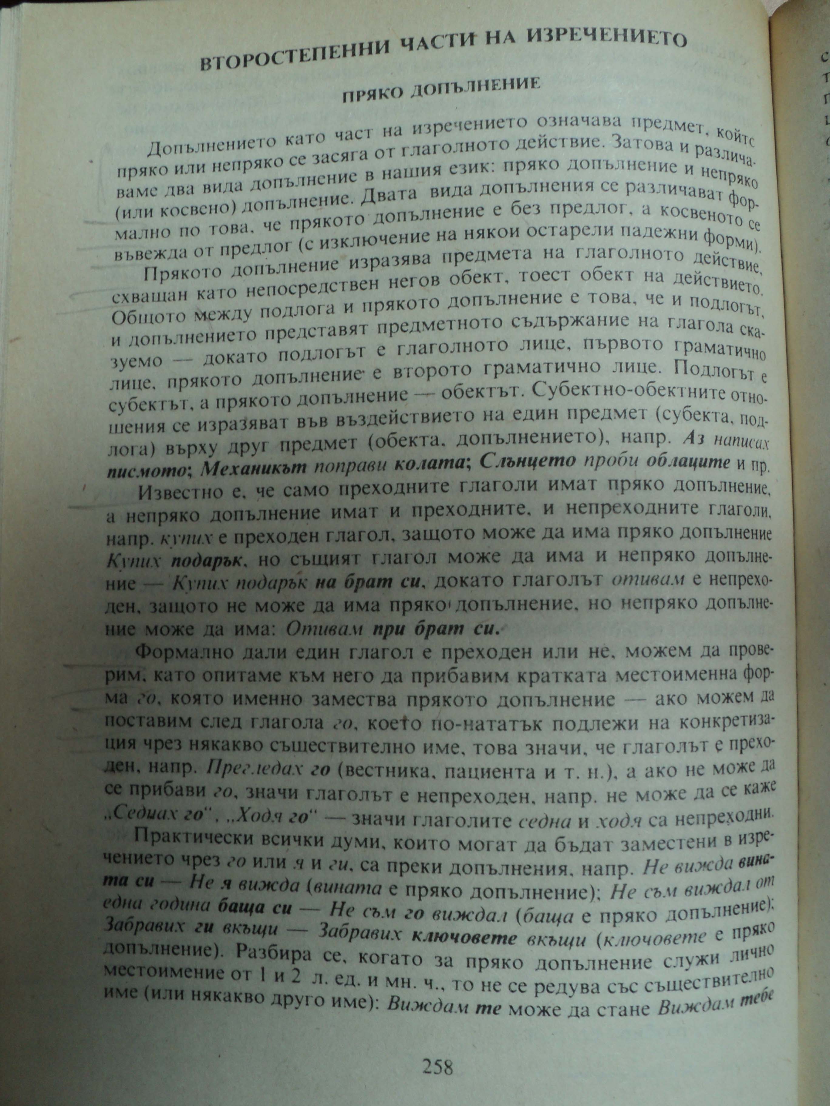 засяга от глаголното действие. Прякото допълнение изразява предмета на глаголното